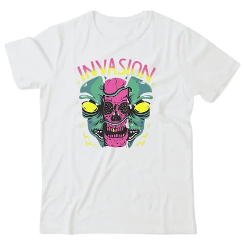 ***Para estampas em camiseta escura, o processo de produção exige um tratamento no tecido com um composto chamado primer. Esse composto pode eventualmente deixar uma leve marca no entorno da estampa que desaparece num curto espaço de tempo ou  na primeira lavagem. ***