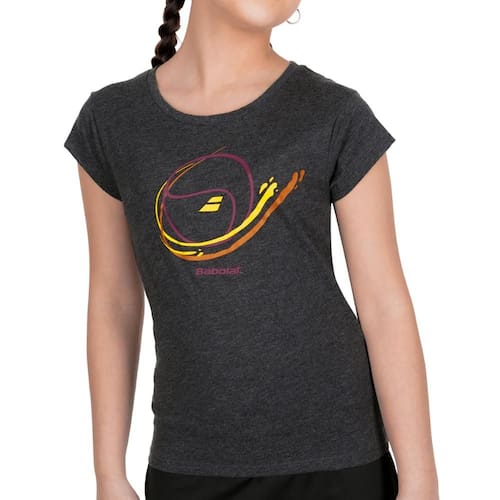 Conheça as características da Camiseta Babolat Exercise Message Tee Infantil Preta- Perfil: Tênis e Casual;