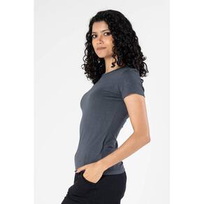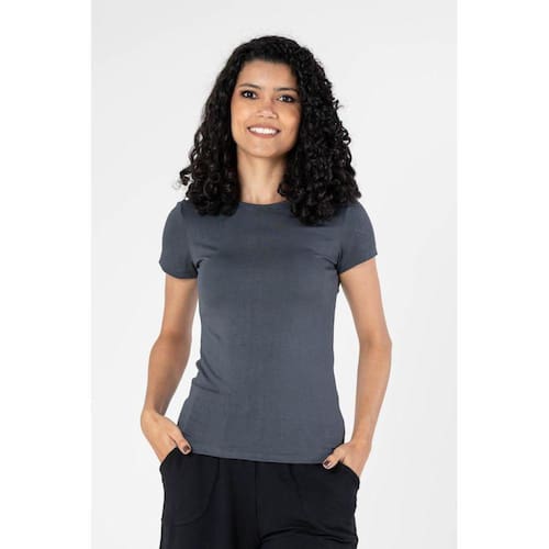 Camiseta Baby Look Casual Feminina Gola Redonda Tendência - Cinza - GG