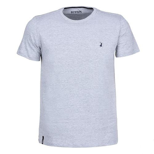 Camiseta masculina Austin Western fabricada em tecido 88% Algodão e 12% Poliéster na cor Cinza Mescla, possui mangas curtas, gola careca e bordado no peito.