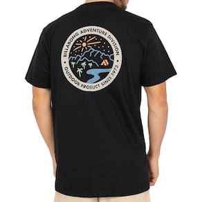 Camiseta Billabong feita em modelagem Core fit, meia malha, estampa aplicada na frente e costas e etiqueta da marca aplicada na lateral do lado esquerdo de quem veste.