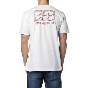 Camiseta Billabong feita em modelagem Core Fit, meia malha de algodão 30.1 penteada, estampa localizada no peito e costas, silk interno e etiquetas personalizadas.