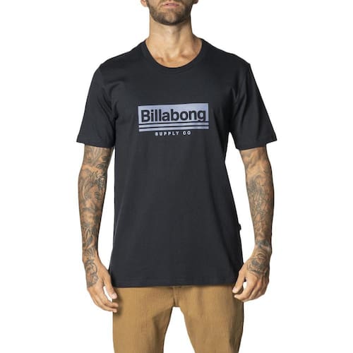 Camiseta Billabong de malha penteada de algodão fio 30/1 com estampa frontal, feita em modelagem core fit e etiquetas personalizadas.