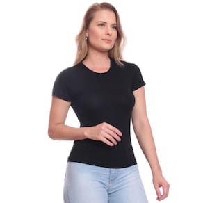 Camiseta Blusa Feminina Slim Fit Baby Look Básica Casual - Preto - M