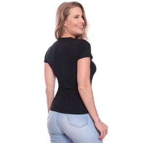 Camiseta Blusa Feminina Slim Fit Baby Look Básica Casual - Preto - EXG