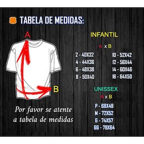 Deixei uma surpresa aqui na descrição, para você que está interessado em comprar esse produto TOP, ficou curioso, dá uma olhada aqui!Dias no Estilo SUA LOJA DE CAMISETAS E BLUSAS ONLINE. Tem alguma ideia legal? Quer presentear alguém homenageando com uma peça única? Todos nossos produtos são criação própria e fazemos todo processo de fabricação.Material Camisetas: 100% Poliéster Sublimação Total.POR FAVOR SE ATENTE A NOSSA TABELA DE MEDIDAS NA TERCEIRA IMAGEM DESTE ANÚNCIO.Camisetas 100% poliéster, usamos a técnica de sublimação para a estampa trazendo melhor qualidade na peça. Tecido muito confortável, extrema durabilidade, leve e muito macio. Moletons 80 % Algodão com Elastano e 20% Poliéster, Confortável, Com Capuz.Pode ser lavado em máquina, pode passar ferro quente sobre toda a camiseta, inclusive sobre a estampa (até 110 ºC). Temos uma excelente equipe de desenhistas, onde trabalhamos e tratamos todas artes deixando todas em alta qualidade. Temos um prazo de fabricação, mas fique tranquilo enviamos tudo no prazo estabelecido pela plataforma e sem atrasos. Recomendamos olhar a tabela de medidas na terceira imagem deste anúncio temos todos os modelos, atenção o tamanho infantil 2,4,6,8 ,10,12,14 e 16 anos não são exatamente para idade informada, tamanhos infantis recomendamos comprar um tamanho acima do qual a criança já utiliza, dúvidas entre em contato conosco, mas antes de clicar em comprar tenha certeza do seu TAMANHO POIS O PROCESSO DE TROCA É MUITO COMPLICADO; então escolha o produto que você deseja, confirme seus dados com atenção, vale lembrar que nossas camisetas podem variar no máximo 2 centímetros para menos devido a costura; Caso nós infringirmos sua propriedade intelectual nos comunique que retiramos o anúncio da plataforma o mais breve possível. Estamos aqui para te ajudar e te fazer feliz, qualquer dúvida estamos à disposição.