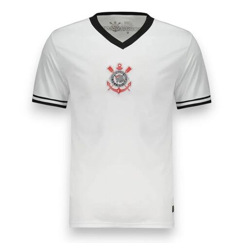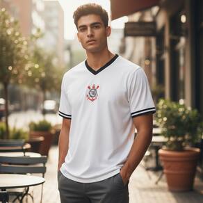 Com manga curta e gola V, esta camiseta masculina é perfeita para os dias mais quentes, proporcionando liberdade de movimento e um ajuste confortável. Seja para um jogo no estádio ou um encontro com amigos, a Camiseta Corinthians é a escolha certa para qualquer torcedor que deseja se destacar.