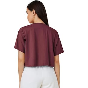 Conteúdo do produto: 1Camiseta Cropped Feminino 100% Algodão Larguinha Bordô