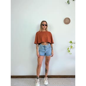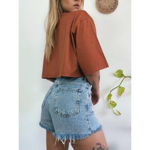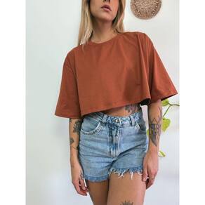 Camiseta Cropped Oversized Aveloz-Terracota - Marrom - PP