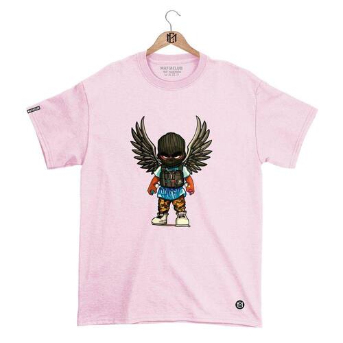 Camiseta DBL Gola Redonda Estampa ANJO Streetwear fio 30.1 Penteado. - Rosa - M