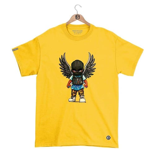Camiseta DBL Gola Redonda Estampa ANJO Streetwear fio 30.1 Penteado. - Amarelo - P