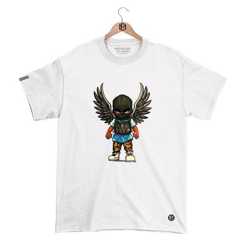 Camiseta DBL Gola Redonda Estampa ANJO Streetwear fio 30.1 Penteado. - Branco - P