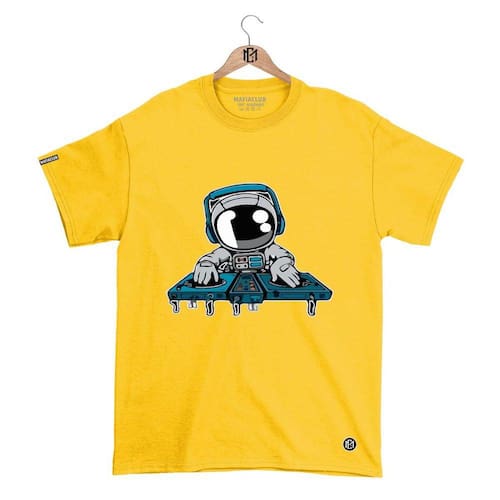 Camiseta DBL Gola Redonda Estampa ASTRO DJ Streetwear fio 30.1 Penteado. - Amarelo - P
