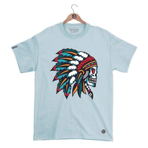 Camiseta DBL Gola Redonda Estampa CAVEIRA 2 Streetwear fio 30.1 Penteado. - Azul Claro - GG