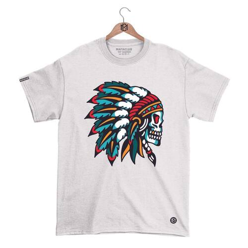 Camiseta DBL Gola Redonda Estampa CAVEIRA 2 Streetwear fio 30.1 Penteado. - Branco - M