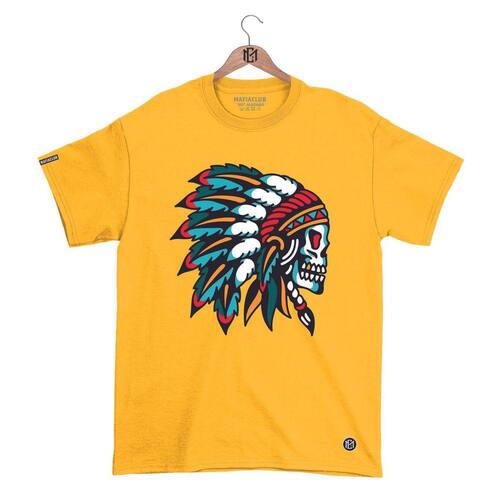Camiseta DBL Gola Redonda Estampa CAVEIRA 2 Streetwear fio 30.1 Penteado. - Amarelo - M