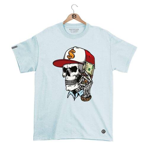 Camiseta DBL Gola Redonda Estampa CAVEIRA Streetwear fio 30.1 Penteado. - Azul Claro - M