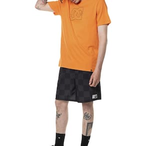 Camiseta DC Shoes manga curta, modelagem regular meia malha 30.1, estampa frontal e etiquetas personalizadas.