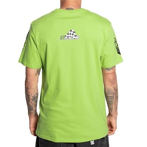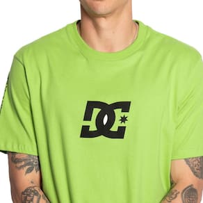 Camiseta Dc Shoes feita em modelagem regular fit, meia malha 30.1, estampa na parte frontal, costas e mengas e etiquetas personalizadas.
