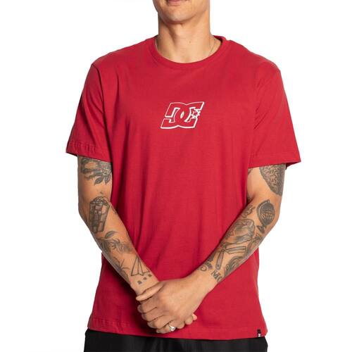 Camiseta Dc Shoes feita em modelagem regular, meia malha 30.1, estampa frente e costas e etiquetas personalizadas.