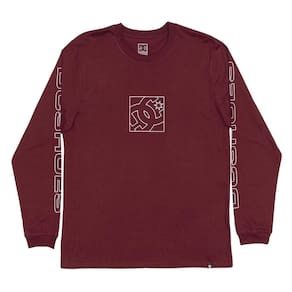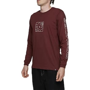 Camiseta DC Shoes Manga Longa feita em modelagem regular, meia malga malha 30.1, estampa frontal e estampas nas duas mangas.