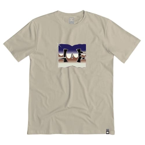 Camiseta Dc Shoes feita em modelagem regular, meia malha 30.1, estampa frontal e etiquetas personalizadas.