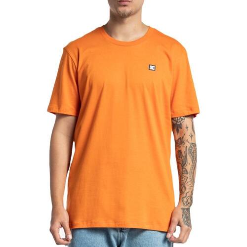 Camiseta DC Shoes em modelagem regular, meia malha 30.1, transfer aplicado no peito e etiquetas personalizadas.