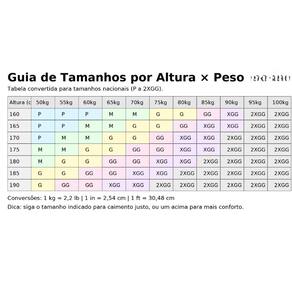 Sugestão de tamanho (grade asiática com equivalência BR):
