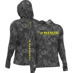 Camiseta de pesca manga longa com capuz Mar Negro Sublimada capuz Dark\nDescubra a Camiseta de pesca manga longa com capuz Mar Negro Sublimada capuz Dark, a escolha perfeita para pescadores que buscam proteção, conforto e estilo em uma única peça. Desenvolvida com tecido tecnológico de alta performance, oferece proteção UV, secagem rápida e respirabilidade, essencial para longas jornadas ao ar livre. O design sublimado garante durabilidade da estampa e conforto térmico, enquanto o capuz ajustável protege contra sol e vento. Além disso, a modelagem anatômica com punhos que permitem encaixe no polegar proporciona liberdade de movimento e segurança. Ideal para quem valoriza performance e resistência em ambientes desafiadores.\nPrincipais benefícios: - Proteção UV alta para pele protegida durante o dia - Tecido leve, respirável e de secagem rápida - Design sublimado resistente ao desgaste - Capuz cruzado ajustável para maior proteção contra intempéries - Modelagem confortável com punhos para fixação nas mãos - Visual discreto e moderno com padrão camuflado Dark\nInvista em qualidade e performance para suas aventuras de pesca com esta camiseta que une funcionalidade e estilo na medida certa.\nTabela de medidas:\nTAMANHO TÓRAX (cm) MANGA (cm) COMPRIMENTO (cm) P 48 64 66 M 50 66 70 G 54 68 72 GG 56 69 73 G1 61 71 75 G2 64 73 78 G3 66 74 80\n Marca: Não Informado Marca: Não Informado Marca: Não Informado