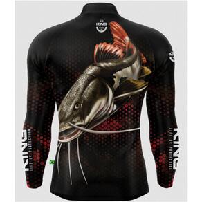 CAMISETA DE PESCA KING BRASIL COM PROTEÇÃO UV 50+ (KFF647N) \nCamisa com proteção Solar, Tamanhos P ao XG \nProtege a Pele dos Efeitos nocivos do Sol \nUv protection e o fio inteligente que protege sua pele da ação dos raios UV-A e UV-B com fator de proteção solar de 30+ a 50+. \nPara os mais exigentes, as camisas da King Brasil com proteção UV protegem a pele durante a exposição ao sol com maior conforto e funcionalidade. \nDevido a modificações no DNA do fio, essa funcionalidade tem ação prolongada durante toda vida útil do produto. \nE a alta tecnologia e segurança que você sente na pele. \n- 100% poliéster\n- Proteção Solar UV\n- Impressão é feita em papel Epson de alta qualidade durável toda vida útil do produto.\n- Gola padre\n- Corte raglã\n- Tecido Tecno Dry Fit \n- Tecnologia de alta Absorção\n- Tecido leve\n- Conforto Térmico\n