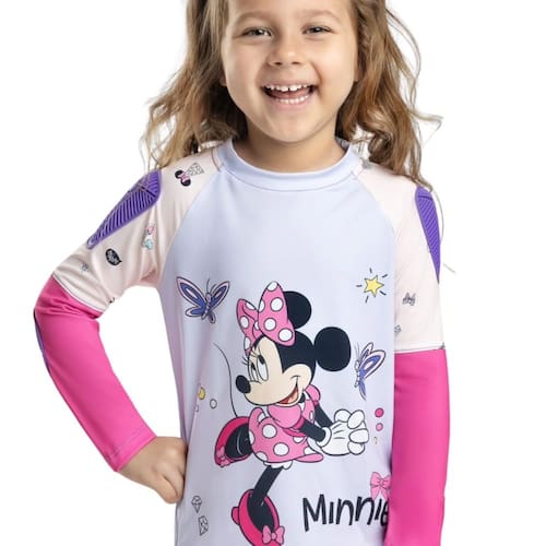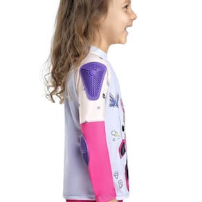 Confeccionada em tecido macio e leve, ela proporciona sensação agradável ao toque, permitindo liberdade de movimento. Sua parte traseira possui material respirável, que favorece a circulação do ar e mantém a criança fresca mesmo nos dias mais quentes. Com proteção solar UV 50+, ela oferece segurança contra os raios solares, além de contar com proteção adicional nos ombros e cotovelos, garantindo ainda mais proteção durante brincadeiras e aventuras.