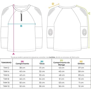 - Tecido leve, macio e com tecnologia antiodor; - Proteção Solar UV 50+ - Gola Redonda; - Ombros e cotovelos com proteção;