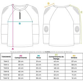 Confeccionada em tecido macio e leve, ela proporciona sensação agradável ao toque, permitindo liberdade de movimento. Sua parte traseira possui material respirável, que favorece a circulação do ar e mantém a criança fresca mesmo nos dias mais quentes. Com proteção solar UV 50+, ela oferece segurança contra os raios solares, além de contar com proteção adicional nos ombros e cotovelos, garantindo ainda mais proteção durante brincadeiras e aventuras.