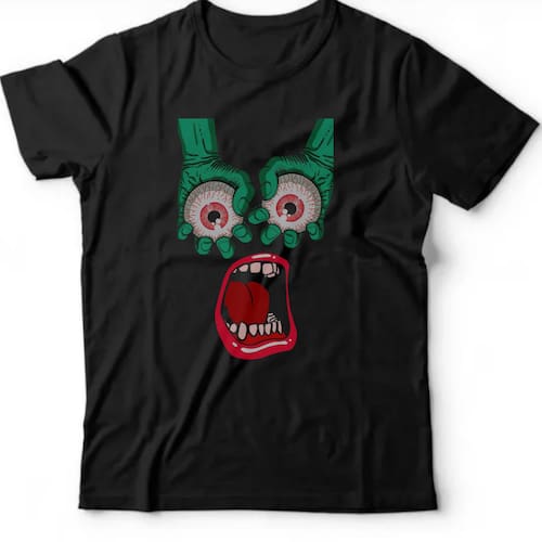 ***Para estampas em camiseta escura, o processo de produção exige um tratamento no tecido com um composto chamado primer. Esse composto pode eventualmente deixar uma leve marca no entorno da estampa que desaparece num curto espaço de tempo ou  na primeira lavagem. ***