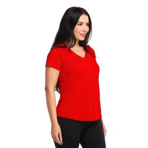 Camiseta Dry Fit Uv Feminina Gola V Academia Poliéster - Vermelho - M