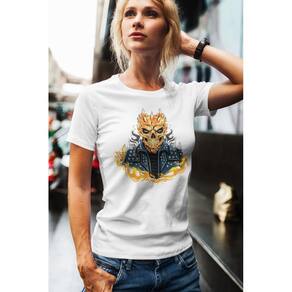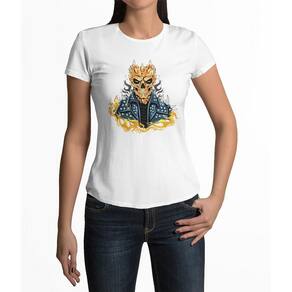 Camiseta ECF Feminina Caveira e Espinhos Manga Curta Branca Poliester - Branco - G