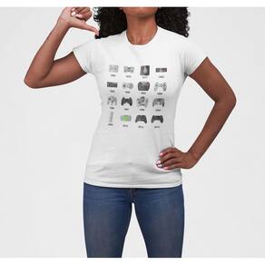 Camiseta ECF Feminina Controles de Video Game Manga Curta Branca Poliester - Branco - G