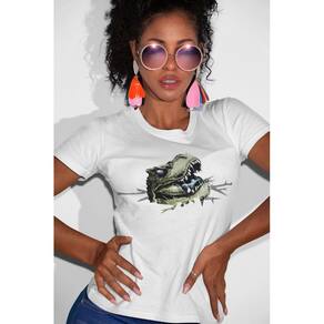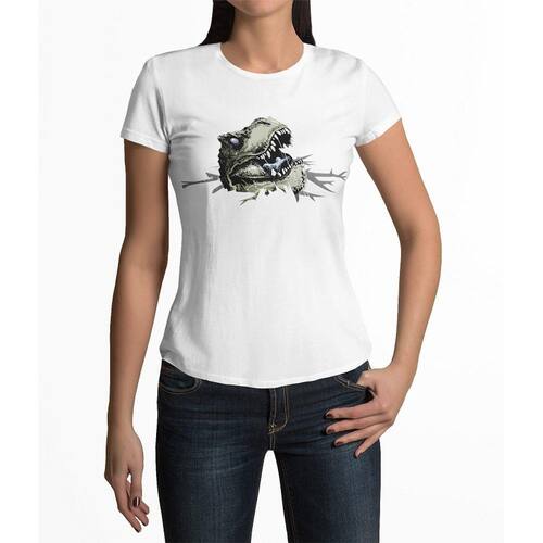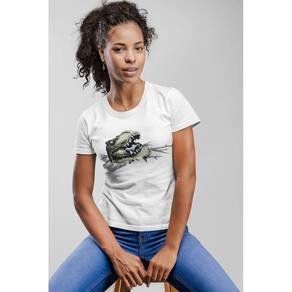 Camiseta ECF Feminina Dinossauro T-Rex surgindo do gelo Manga Curta Branca Poliester - Branco - P