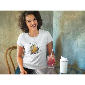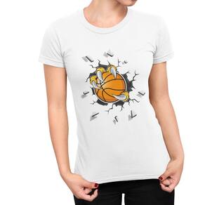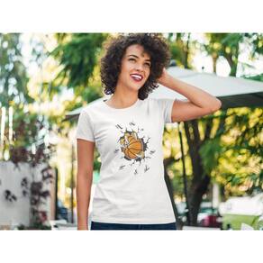 Camiseta ECF Feminina Garras segurando bola de basquete Manga Curta Branca Poliester - Branco - G