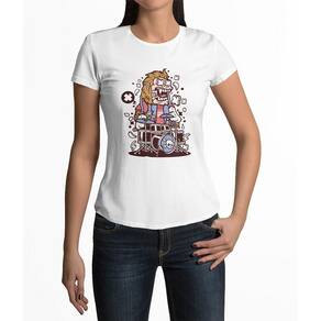 Camiseta ECF Feminina Gorila Baterista Manga Curta Branca Poliester - Branco - GG