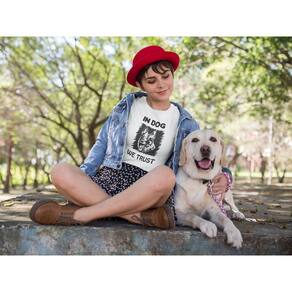 Camiseta ECF Feminina In Dog We Trust Manga Curta Branca Poliester - Branco - GG