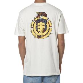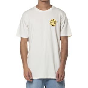 Camiseta Element básica em modelagem regular, estampa frontal e traseira, meia malha 30.1 e etiquetas personalizadas.