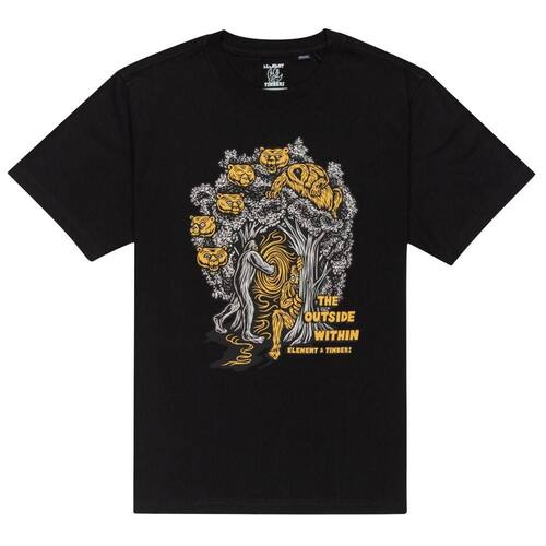 Camiseta Element feita em modelagem regular, estampa frente e costas e etiquetas personalizadas.