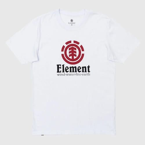Camiseta Element feita em modelagem regular fit, estampa localizada na frente e etiquetas personalizadas.