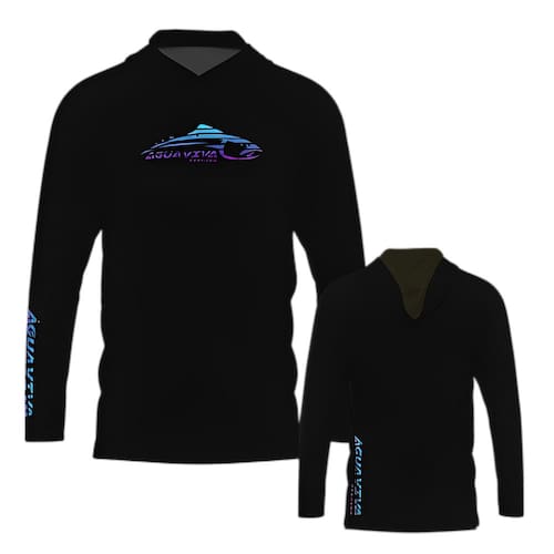 Camiseta Esportiva Com Capuz Spectral Line Água Viva Fishing Pesca FPS50+ Preta