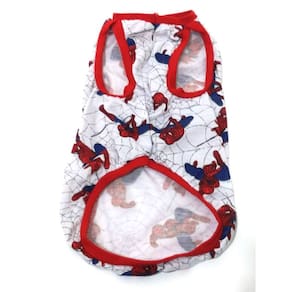 Camiseta confeccionada em malha PV poliéster com viscose na cor branca; Estampa temática do Personagem Homem Aranha; Acabamento em cotton vermelho; Tamanho : P; Cor: Branca; Medidas aproximadas: 31 cm de comprimento, 38 cm de circunferência torax, 23 cm pescoço; Deixe seu Pet super estiloso com seu personagem favorito. Marca: Não Informado