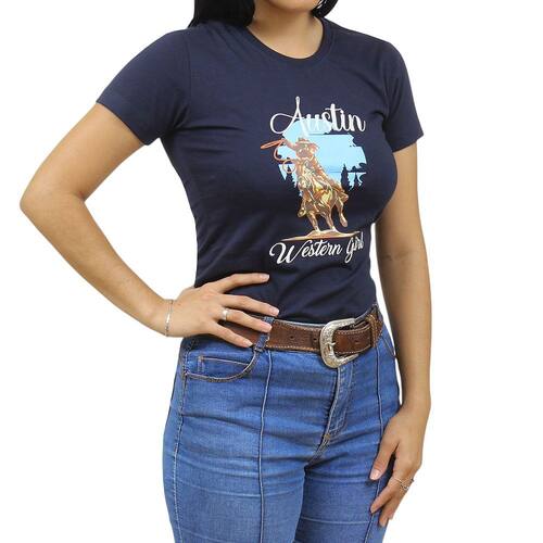 A Camiseta Feminina da marca Austin Western é uma peça clássica e estilosa, perfeita para compor um look casual e moderno. Fabricada em tecido de alta qualidade, 100% Algodão, ela é macia, confortável e durável. Na parte frontal da camiseta, encontra-se a estampa bordada da marca, que apresenta um design elegante e chamativo, com o nome da marca em letras grandes. A combinação de cores sólidas e contrastantes confere um visual impactante e sofisticado à peça, tornando-a ideal para quem busca um estilo contemporâneo e autêntico. Com modelagem que realça o corpo feminino, ela oferece um caimento perfeito e é fácil de combinar com diferentes tipos de peças. É uma opção versátil e confortável para o dia a dia, seja para uma montaria ou um happy hour com amigos. Além disso, é uma peça atemporal e duradoura, que pode ser usada em diferentes ocasiões e estações do ano.