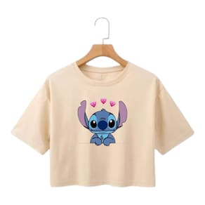 Camiseta Feminina Croped Stich Malha Leve Para O Verao - M - Bege Claro
