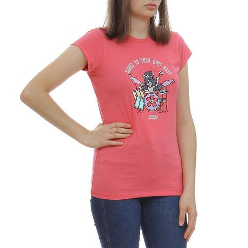 Camiseta infantil feminina Levis's fabricada em tecido 100% Algodão na cor Pink, possui mangas curtas, gola tradicional e estampa na parte frontal.