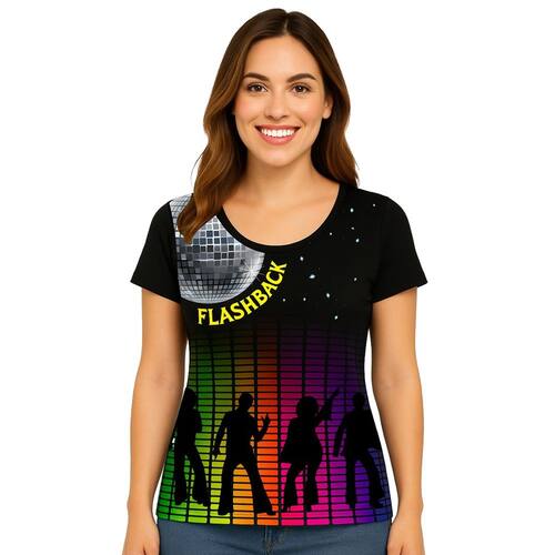 Reviva os melhores momentos da era disco com a Camiseta Feminina Manga Curta Temática Flash Back Retrô, perfeita para quem busca estilo e autenticidade no dia a dia. Com estampa vibrante que remete à energia das pistas de dança dos anos 70, 80, 90 e 2.000. essa camiseta destaca-se pela combinação única de cores do espectro musical e silhuetas icônicas, proporcionando um visual moderno e cheio de atitude.